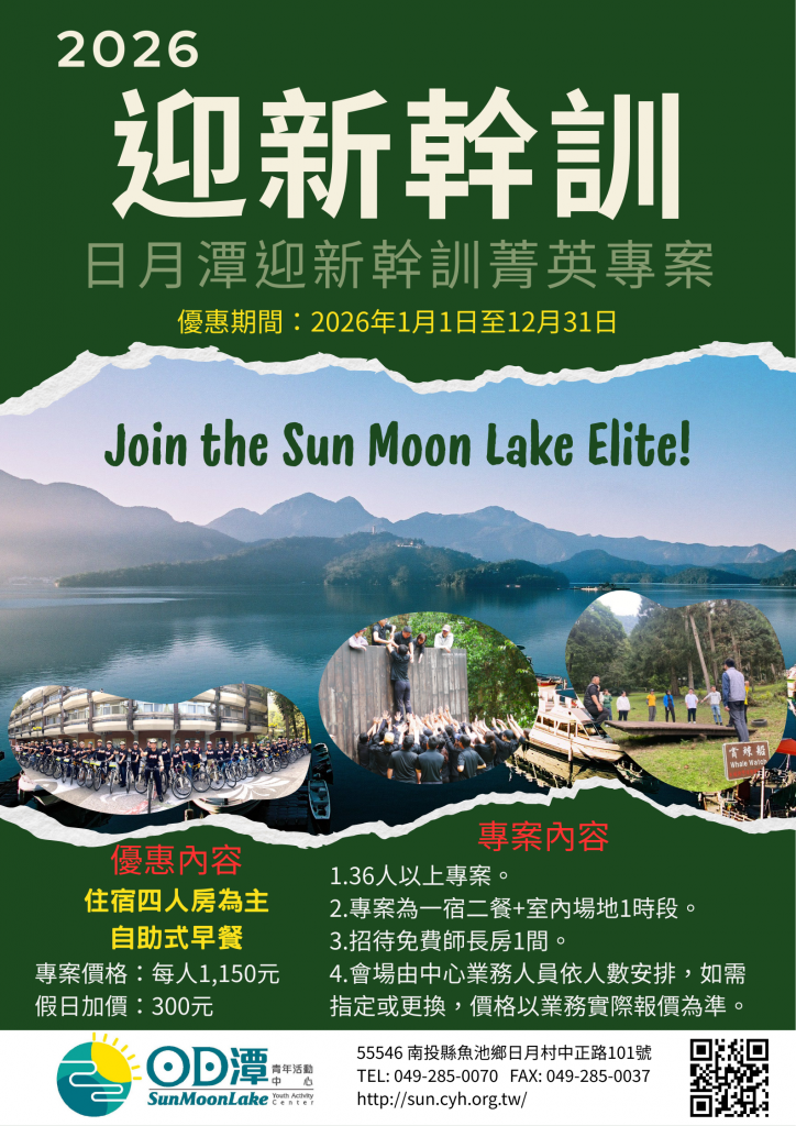 1.專案日期:115年01月26日~12月30日。 2.每日限量 8 間。 3.本專案住宿附贈當日晚餐(青心園咖啡廳套餐)、隔日早餐及日月潭纜車票。 4. 兩人經濟平日3,400元 假日4,000元。 […]