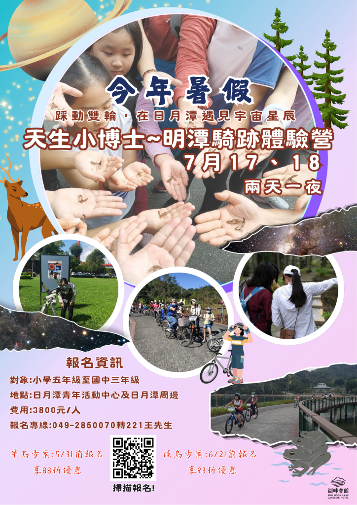這個暑假,給孩子一個走出戶外的機會 在自然裡觀察、在活動中體驗, 慢慢建立自信,也學會與他人相處 天生小博士・明潭騎跡體驗營 7/17-7/18(兩天一夜) 由專業人員帶領, 透過課程安排與活動設計, […]